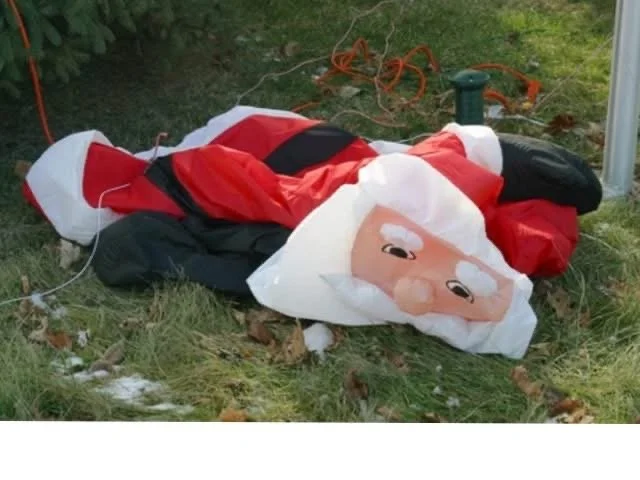 I saw one such deflated Santa on the grass and thought, “I feel like that sometimes!” His body lay crumpled in a useless heap, his arms splayed lifelessly, and his legs askew. The sight made my back hurt just to imagine it. And yes, I feel like that sometimes.
